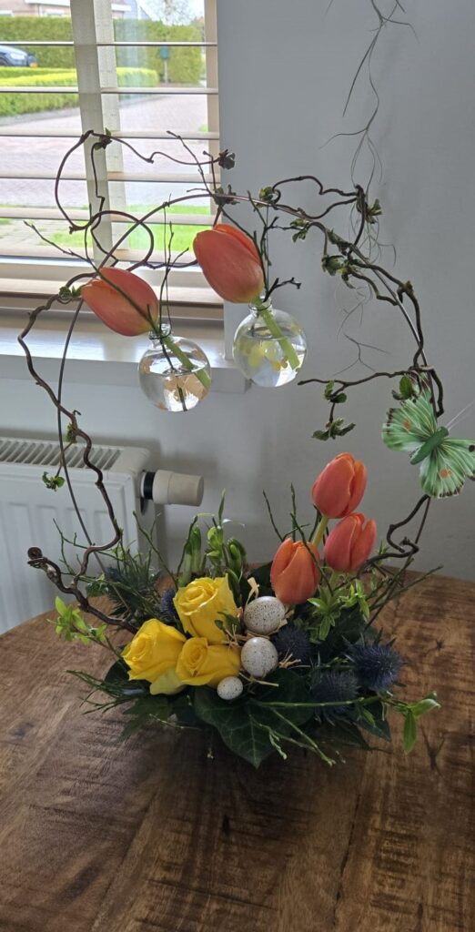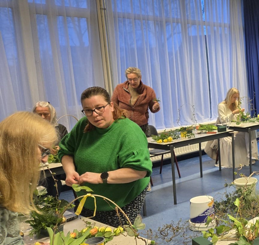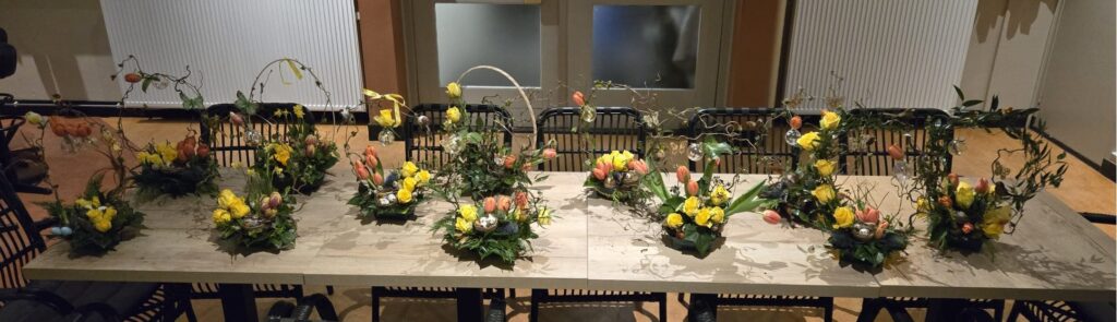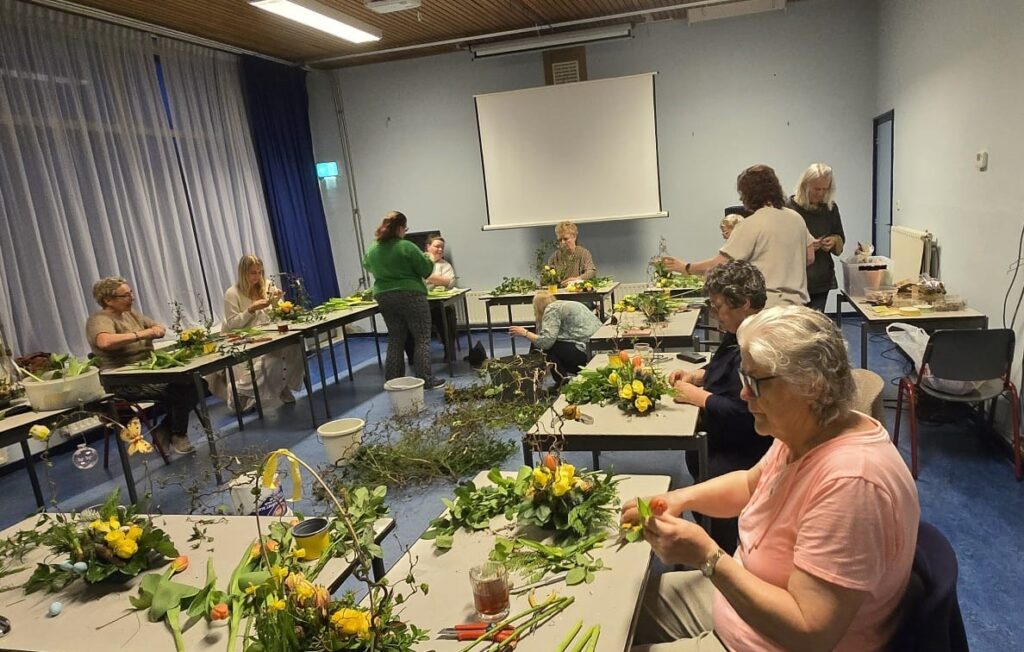 Wat was het een gezellige en geslaagde avond tijdens het maken van de paasstukjes! Jong en oud kwamen op 15 april samen in Dorpshuis de Wending om hun creativiteit de vrije loop te laten. De tafels lagen vol met kleurrijke bloemen, vrolijke paastakken, kuikentjes en andere decoraties – alles wat je nodig hebt voor een prachtig paasstuk.