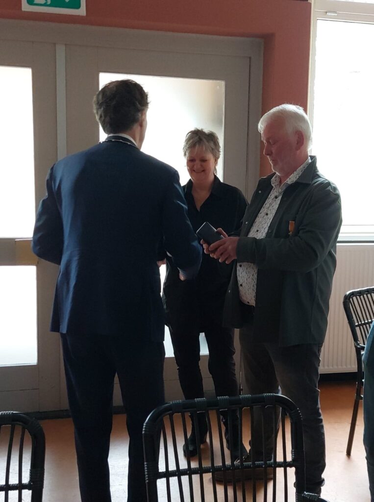 Op 25 april rond 9:00 uur werd dorpsbewoner Eddy Kingma verrast door hoog bezoek. Burgemeester Ard v.d Tuuk van de gemeente Westerkwartier klopte aan zijn deur om hem een lintje op te spelden.