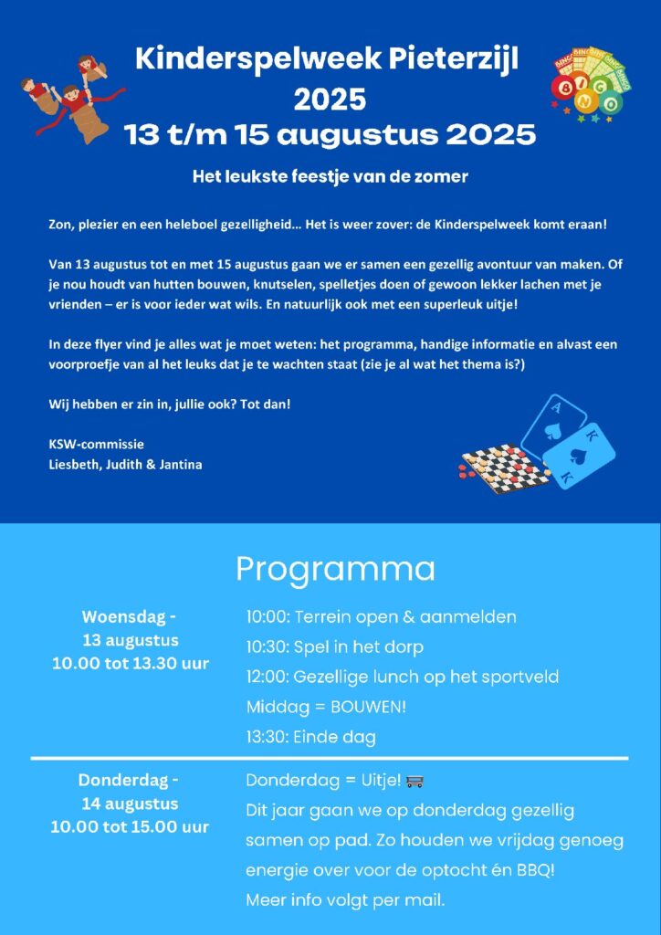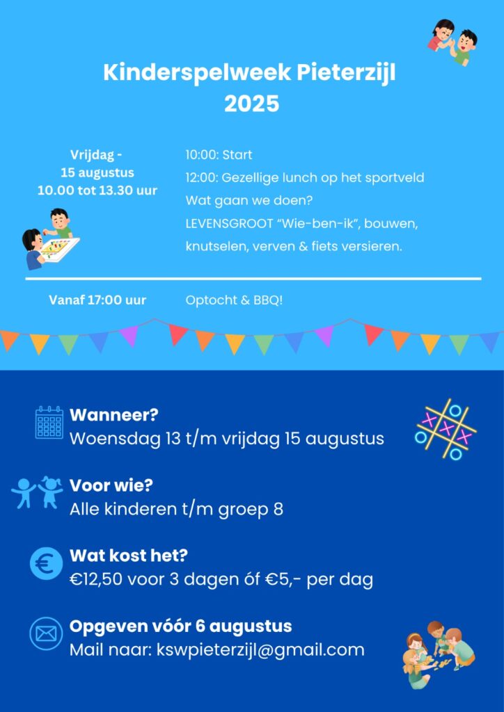 Dit jaar is de Kinderspelweek van woensdag 13 augustus t/m vrijdag 15 augustus en het thema is ‘Spelen