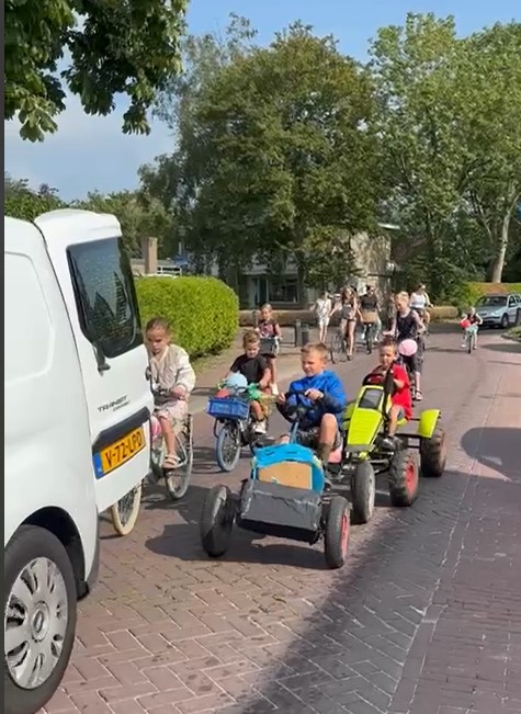Vrijdag was het al weer de laatste dag. Tussen de middag werd er gesmuld van pannenkoeken en in de middag konden groot en klein buikschuiven. Om 17:00 uur trok een bonte stoet feestgangers op de versierde fietsen door het dorp en daarna kon groot-en-klein aanschuiven voor de barbecue.