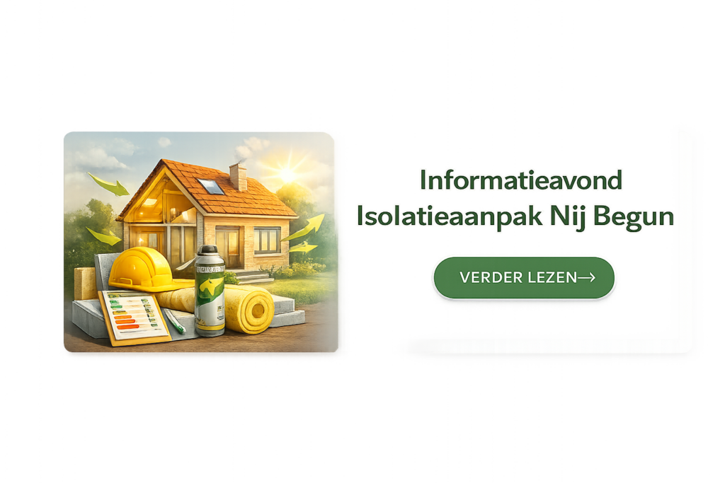 Op 30 oktober is er in De Wending een informatie-avond over de isolatieaanpak van Nij Begun en de aanvullende subsidieregeling vanuit de gemeente. Aanmelden is niet nodig.